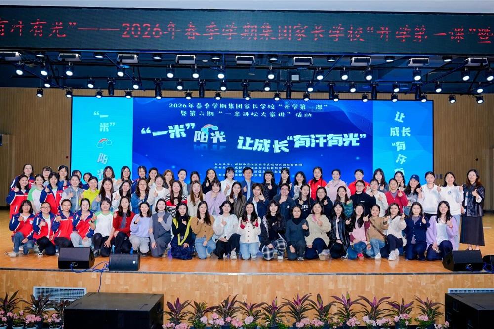 为深入贯彻落实 “健康第一” 教育理念,落实立德树人根本任务,推动家-园-校-社-政协同育人机制落地见效,2026年4月14日,成都市温江区光华实验幼儿园教育集团在温江区菁才中学隆重举行2026年春季学期家长学校“开学第一课”暨第六期“一米讲坛大家讲”活动。本次活动是“健康第一”光华行动系列活动菜单(春夏版)的第三个活动,也是集团深化“健康第一”理念、推进协同共育的又一重要实践。